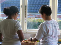 Vol.0239 「NZ・生活編」 〜父の日改革〜 「父の日」といえば、6月の第3日曜日。「母の日」に比べてかなり地味で盛り上がりに欠ける日。「母の日」のカーネーションのような定番がなく、なかなかプレゼントが思いつかない日。思いついてもタバコだのお酒だの、積極的に買いたくないものばかりの日。作り物のホワイトデーよりはましながら、何もしなくてもたいして後ろめたさの残らない印象の薄い記念日・・・。 私にとっての「父の日」のイメージは、こんなものでした。子供たちが幼稚園や学校で作ってくるカードや工作も、どう見ても「母の日」の方が凝っており、私のイメージは世間一般のそれと大きくかけ離れているわけではなさそうでした。しかし、ニュージーランドに来て、そのイメージが一変しました。それは私だけでなく、夫自身、子供たちも含め、家族全員にとっての一大意識改革、嬉しいサプライズでした。それを教えてくれた近所の人たちへの感謝も込めて、西蘭家が過ごした「父の日」をお伝えします。 NZの「父の日」はなぜか9月で、今年は5日でした。「何かしてあげたら〜?」と、子供たちに軽く念押ししながらも、何の予定もないまま迎えた当日の朝。8時ごろ玄関でドアベル代わりの金属をカチカチ鳴らす音が・・。「さっそく子供の友だちが遊びにきたな」と思っていると、見に行った夫に「ハッピー・ファーザース・デー!!」と言っている声がします。そして彼らが帰った気配。「わざわざあいさつに来たの?」と思っていると、夫が首から黄色と青のレイをかけ、大きなケーキを持って戻って来ました。 (←とっても美味しかったバナナケーキ♪) 思いがけないことに、西蘭家の朝食は急きょバナナケーキとなり、みんなそれぞれ感慨深げ。「いやぁ、驚いたなぁ。今までの「父の日」、いや人生でこんなに意外なプレゼントをもらったのは初めてだよ〜」と、レイをかけたまま感動にひたる夫。内心、「やっば〜〜」とでも思ってるのか言葉少なの息子たち。イライジャ一家の粋な計らいに感心しまくる私。朝食後、夫は感動のまま、用事で出かけて行きました。 すぐに近所に住む別の友達シオネがやってきました。きょうだいの多いシオネ一家ですが、誰も今日が何の日か覚えておらず、お父さんが家族の前で思わず、"Happy Father's day to me, Happy Father's day to me・・・"と"Happy Birthday"の替え歌で歌ったそうな・・・(笑)「なにかしてあげなさいよ、あなたたち。今からでも遅くないから」と諭すと、3人は相談を始めました。その結果、@歌を歌う、Aカードを書く、B詩を贈る、C夕食を作る、という四大作戦で起死回生を図ることに・・・。 (←重いのかギターを横に置いてお琴状態の善) Always nice Taking care Who am I? Who am I? I am your father? I am your son? Happy Father's day! 一応軽く韻も踏んで、さすが高学年。ちょうど帰ってきた夫にさっそく歌とカードのプレゼント。ランチの後はさすがにゲームに流れて、一休み。 本当に夕食をあてにしていいものかどうか4時ごろ3人に念を押すと、「大丈夫!」との力強い返事。「材料も作るものも決まってないのに?」と、土壇場でこちらに振られるのを覚悟していると、な〜〜んと子供たち、シオネの家に行って中学生のお姉さん、リサを呼んできたではないですか!突然呼ばれた彼女も何事かと、"What can I do for you?"と私に聞く始末。「お料理得意?」と聞くと、「あんまり」という答え。でも4人とも作る気だけは満々なので、こちらで音頭を取りつつ任せることにしました。 善(7歳)−米とぎ係 シオネ(8歳)−サラダ係 温(10歳)−フレンチ・ドレッシング係 リサ(11歳)−焼き鳥係 遅まきながら、NZのパパたちへ、Happy Father's day! ****************************************************************************************** 「マヨネーズ」 8月の終わりから大型店は一斉に「父の日キャンペーン」に入りました。しかし、お世辞にも全店挙げてという状態ではなく、キャンペーンの商品目玉も、芝刈り機だの日曜大工セットだの実用品ばかり。「父の日まで働けってか?」と、芝刈りにも日曜大工にもまったく興味のない夫は、わんさか入ってくる新聞の折り込み広告を見てはやや食傷気味。そうでなければ、靴下、下着、髭剃りセットと、限りなく日用品に流れ、「どっちにしろ買うつもりだったから」とついでに贈られるような品ばかり。これが「母の日」にはどうなるのか、今から楽しみ♪ 西蘭みこと |