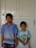 | 2003年9月30 日(火) 寿司はやっぱり魚抜き! 明日は新中国の建国記念日に当たる国慶節で、97年の中国返還以降は香港も休日です。この9月から、週末は土日とも早朝から子供のスポーツレッスンがあるため、西蘭家は朝寝坊できる日がなくなってしまいました。ですから、「朝寝ができる待ちに待った休日♪」と言いたいところですが、そこをグッとこらえて子供の友だちをお泊りに呼ぶことにし、今夜は他の友だちも呼んで、ささやかな「お子様御用達さび抜き寿司ディナー」をやりました。 呼んだ子が二人とも香港人だったので、玉子、サーモン、ホタテ、うなぎの蒲焼(かなり薄めの穴子もどき)、カニかま、マグロ、とびこ、甘エビ・・など、香港では非常〜〜に一般的ながら、日本人には非常〜〜に珍しい、サーモンとマグロ以外の魚抜き寿司にしてみました。一番人気は意外にもカニかまで、これにサーモン、ホタテと続きました。でも、思ったほどは食べてくれず、子供4人の目は「スパイキッズ2」と「ゴジラ」のDVDに釘付けでした。まっ、いいけどね。余った酢飯は明日のピクニックのいなり寿司に入れちゃうもんね〜。という訳で、明日は友人家族とピクニックへ・・。けっきょく、朝寝坊はお預けです。(移住したら死ぬほど寝るぞ〜!) (やった〜!初めて自分で写真もUPしました〜♪ しかし、すっご〜〜〜〜く面倒くさい方法。夫よ、今までありがとう。でも、これからもヨロシクね!) by みこと 2003年9月29日(月) 「オレンジ・マンデー」 働いている頃は、月曜になるとオフィスで「ブルー・マンデー」なる言葉をよく耳にしましたが、今の私は専業主婦♪ 「ブルー・マンデー」は過去の話で、今は「オレンジ・マンデー」!なぜオレンジかというと、香港の携帯電話会社「オレンジ」の宣伝コピーに「未来はバラ色」をもじった"Future is Orange"というのがあるんですが、占い師に「ラッキカラーはオレンジ」と言われて以来(本当は最も縁遠い色でした)、そのコピーが気分的にピタッときているからです。じゃ、なんで"Monday is Orange"かというと、怒涛の週末を終えて一人になり、ホッと一息つけるから・・・、かな? さてさて、先週のミッション(各20点):@夫から「何とかならないの?」と言われてる、ぐちゃぐちゃのビーズ机は見事にそのまま(←近づきもしませんでした)、A月イチの勉強会は無事再開(←来年1月の予定まで完璧ぃ!)、B息子の友だちのご招待は善の体調不良で延期(←残念〜。ドタキャン失礼)。ミニミッション(各10点):Cクローゼットの交換完了(←やっと・・)、D移住エージェントへのメール送付(←返事こないぞ〜)、E髪の毛を切りにいく(←これも善の体調イマイチで延期)、F元お手伝いさんにフィリピン料理を習う交渉成功(←代わりに日本食を教えることに。私の数少ない十八番はとっくに教えてあるし大丈夫か?)その結果、半分の50点ということに。まぁ、こんなものでしょう。 今週も懲りずに続けます。ミッション(各20点):@子供の友だちを招待しての寿司ディナー&お泊り、A友人家族とのピクニック企画&実施、BHPを写真入りでUPできるようになる(悲願!)、ミニミッション(各10点):C月イチの勉強会メンバーによる月末のピクニックの企画&準備、D香港で見る最後の花火になるかもしれない国慶節(新中国建国記念日)の花火を絶対見る、E子供部屋の模様替えも視野に入れた片付け着手、F学園祭でのビーズアクセ販売に向けたブース確保・・と、いったところ。休日を挟むため、家事が進まないのは目に見えてます。その分、お出かけを充実させてごまかしましょう!ここまでくると、ぐちゃぐちゃのビーズ机が片付くのと、移住認可が下りるのとどちらが先か? by みこと 2003年9月28日(日) スポーツ週末 ところが、私はレース時間を読み間違え、な〜んと着いた瞬間に善のレースが終わっていたという大失態(泣)!一瞬、立ち直れませんでした。1レースしかエントリーしていなかったので、悔しさもひとしお、後悔の嵐でした・・・。香港では最初で最後の大会だったかと思うと残念でなりません。しかも、その間、家で洗い物や洗濯をしていたのかと思うと、よけいにガッカリ。「ギリギリまで片付けて帰って来た時に、少しでもきれいなように」なんて、思ってしまう専業主婦根性を逆恨みしたいところでした。しかし、自業自得。ここはじっとガマンです。(本当にごめんね、善) けっきょく、泳ぎもしないのにプールサイドに5時間もいてさすがにぐったり。夜はそのまま友人家族と韓国焼肉へと流れ、久々にキムチやお肉をもりもり食べてやや復活。友人の5才のお子さんをお泊りで預かることになり、息子たちは大喜び。善のレースを見逃すほど、直前まで片づけてたとはいえ、とてもお客さんをお迎えする状態にはなく、5才の子供でも家の中の様子にびっくりしたろうなぁ〜? 今日は7時に全員起床。8時半には先発隊の夫が子供たちを連れて家を出て、9時から善のラグビー開始。それが終わる頃、片付けと洗濯終えた私