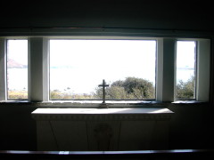 Vol.0129 「NZ編」 〜祈りの場〜 外と同じ眺めなのに、ガラスの向こうの風景はまるで一幅の絵でした。教会の中は外よりも一段と暗かったため、夕闇に包まれていたはずの外の眺めは、まるで一日の残光の中でほのかに輝いているように明るく見えました。完全な逆光の中、建物の壁は黒い額縁のように、はかなく消えていく光を縁取っています。雄大な眺めをこの黒縁の中に切り取ったことこそが、この建物の傑作たるゆえんでしょう。まさに静謐という言葉そのものでした。 私はクリスチャンではありませんが、南島のほぼ真中に位置する「善き羊飼いの教会」ほど、祈りの場に相応しい場所を他に知りません。大自然を切り取って目の前に差し出すことで、この教会に足を踏み入れる者に祈る対象を授けているのです。同じ眺めであっても、教会の外では広大過ぎて、その美しさに心を奪われることはあっても、祈りにはつながらないのです。現に私たちは、圧倒的な自然を前に言葉を失い、ファインダーをのぞくのも虚しく、茫然と立ち尽くしているばかりでした。 ここは教会でありながら、人々が本当に祈りを捧げてきたものは窓の前に立つ小さな十字架ではなく、その向こうの大自然そのものではなかったのかと思い当たりました。十字架は切り取られた風景に一つの焦点を与えているに過ぎないように思います。それがゆえ異教徒でも無宗教の者でも、この場所に足を踏み入れたならば、膝まづいたり手を合わせたりせざるを得ない気持ちになっても不思議はありません。それぐらい、そこは信仰で満ち、視界のすべてが神々しく見えました。 こんな場所では祈るという、神への語りかけを通じた自問自答をしてみたくなります。小箱のような部屋全体が懺悔室そのものとなり、「悔い改めよ」という水先案内をする牧師がいないからこそ、直接自らの心に、ひいては神に語りかけ、悔いたり決意を新たにしたりしながら、自分の思考を深めていくことができそうな気がしました。あの静寂、雄大さ、人工的なものが視界から消える清廉な一日の終わりの一刻。その日の自分を振り返るには最適の場所に思えます。 NZ北島。私の知る限り、NZにはもう一つ祈りの場として相応しいところがあります。それはロトルアにあるアングリカン教会です。こちらもロトルア湖の湖畔に建っていますが、「善き羊飼いの教会」に比べて規模も大きく、建物も立派で、同じ敷地内にマオリの集会場もあり、北島らしいローカル色豊かな教会です。裏手には戦没者を始め、町の人々が美しい湖を望みながら、とこしえの眠りについています。 方角は北(北半球での南)向きで、朝の祈りに向いた場所です。教会内の右手には等身大の大きなキリストを描いたステンドグラスがあり、その向こうにはロトルア湖が広がっています。キリストがちょうど水面に片足を踏み出し、渡って来るような構図になっているのが見事です。顔立ちはどう見てもマオリ人で、はりつけにあった痩せ細った姿とは似ても似つかぬ骨太の逞しい姿で、羽毛でできたマオリの酋長の服をまとっています。わかり易い容姿を施すことで、マオリ人たちへの布教に役立てたのでしょう。 でも、私はこの雄々しいキリストがけっこう気に入っています。朝日を背にして後光を放ちながらこちらに向かってくる姿には、信仰心の高揚という目的を超越したものを感じます。親しみ易いキリストと背後の湖とが一体化した構図は人々を惹きつけ、ここを訪れる者は知らず知らずのうちに、外に広がる美しい自然を拝んでいたのではないでしょうか?「善き羊飼いの教会」の黒く影になる窓枠や小さな十字架のように、このキリストは人々に祈る対象を与えてきたのかもしれません。そして、本当の信仰と神はその向こうの無限の空間に在ったのではないでしょうか?教徒でない私には、そんな風に思えてなりません。 私は神の存在を信じています。ただし宗教心はありません。ですから教会だろうが神社仏閣だろうが、道教の廟だろうがヒンズーの寺だろうが、祈れるものには何でも手を合わせます。それぞれ構えが違っても、その向こうの存在は同じ物(少なくとも同じ起源のもの)だと思っているので、見た目の違いは気になりません。そして祈りは決して一方向の"おねだり"ではなく、願うと同時に自分も実現に向けてまい進し、何かが起きれば反省したり喜んだりし、何も起きなければ起きない意味を掘り下げて考え、最終的には感謝につながっていくものだと信じます。朝な夕なに自然に祈れる、神々に近い暮らしの中で、心穏やかに生きていければ・・・と、心から願っています。 *********************************************************************************** 「マヨネーズ」 「善き羊飼いの教会」は日本人観光客に最も人気の高いコースの一つでしょう。一度、午前中に行ったことがありますが、辺りは観光バスで乗りつけた年配の日本人でいっぱいでした。みな嬉しそうに湖をバックに